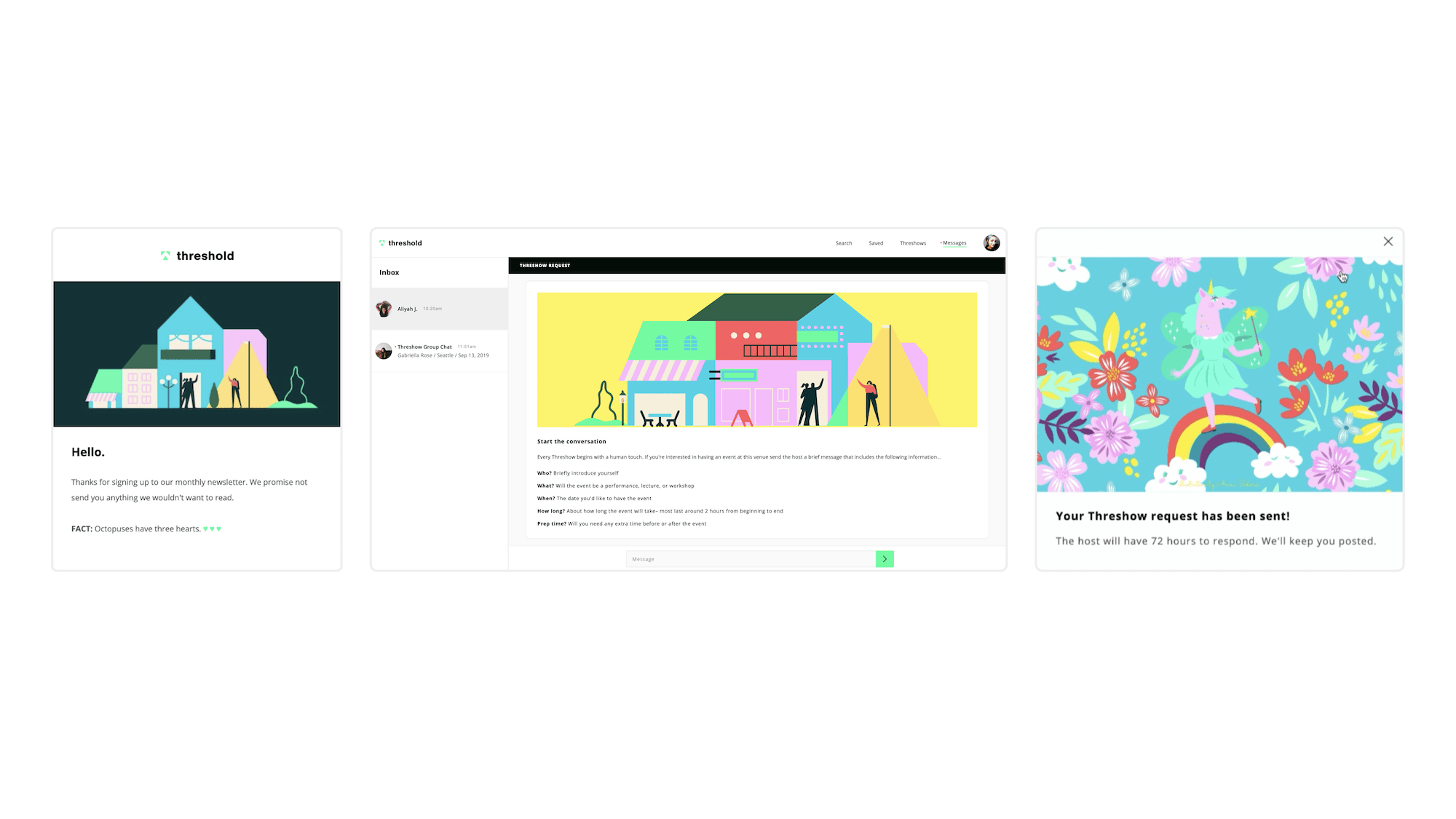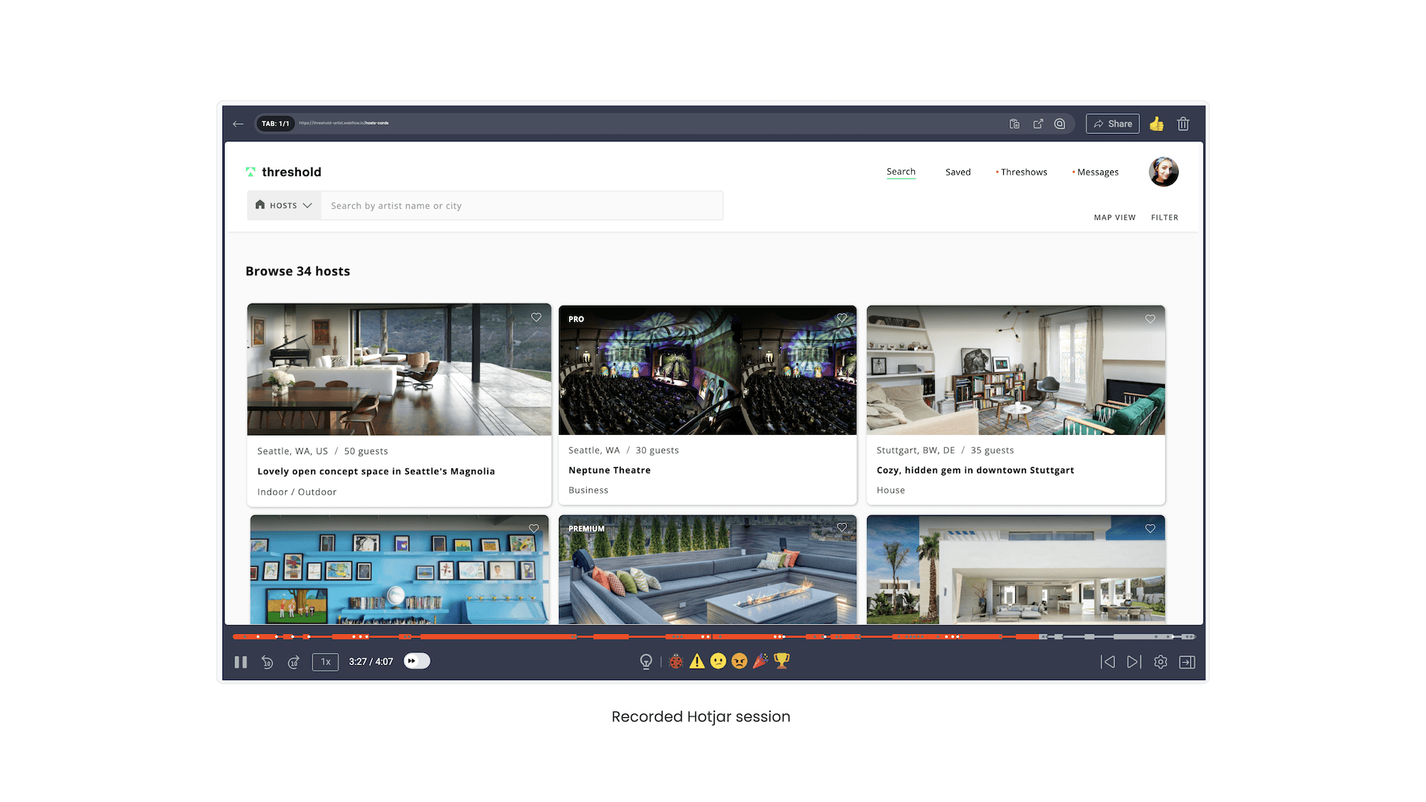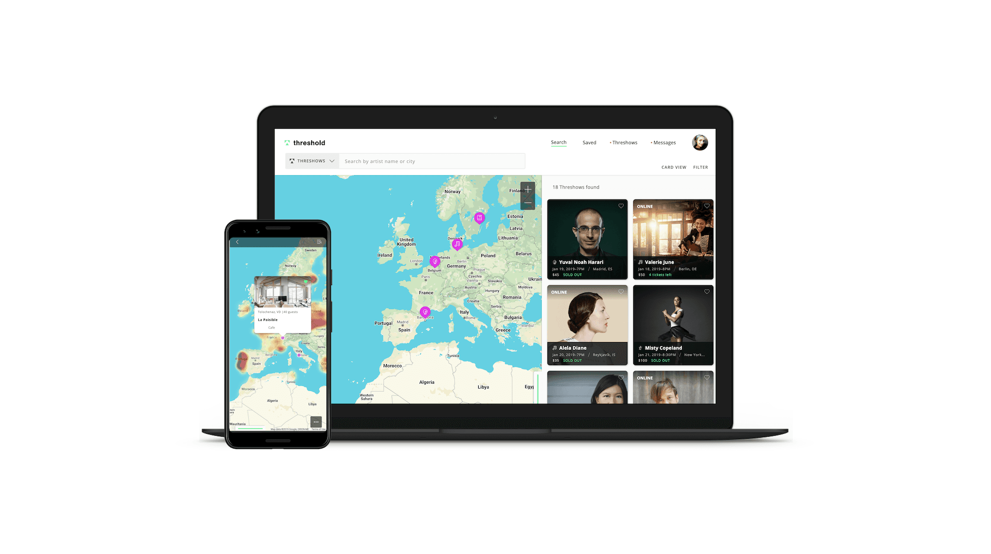 Threshold was a three-sided marketplace that helped performing artists find their fans globally and set up live events in their fans home or business.