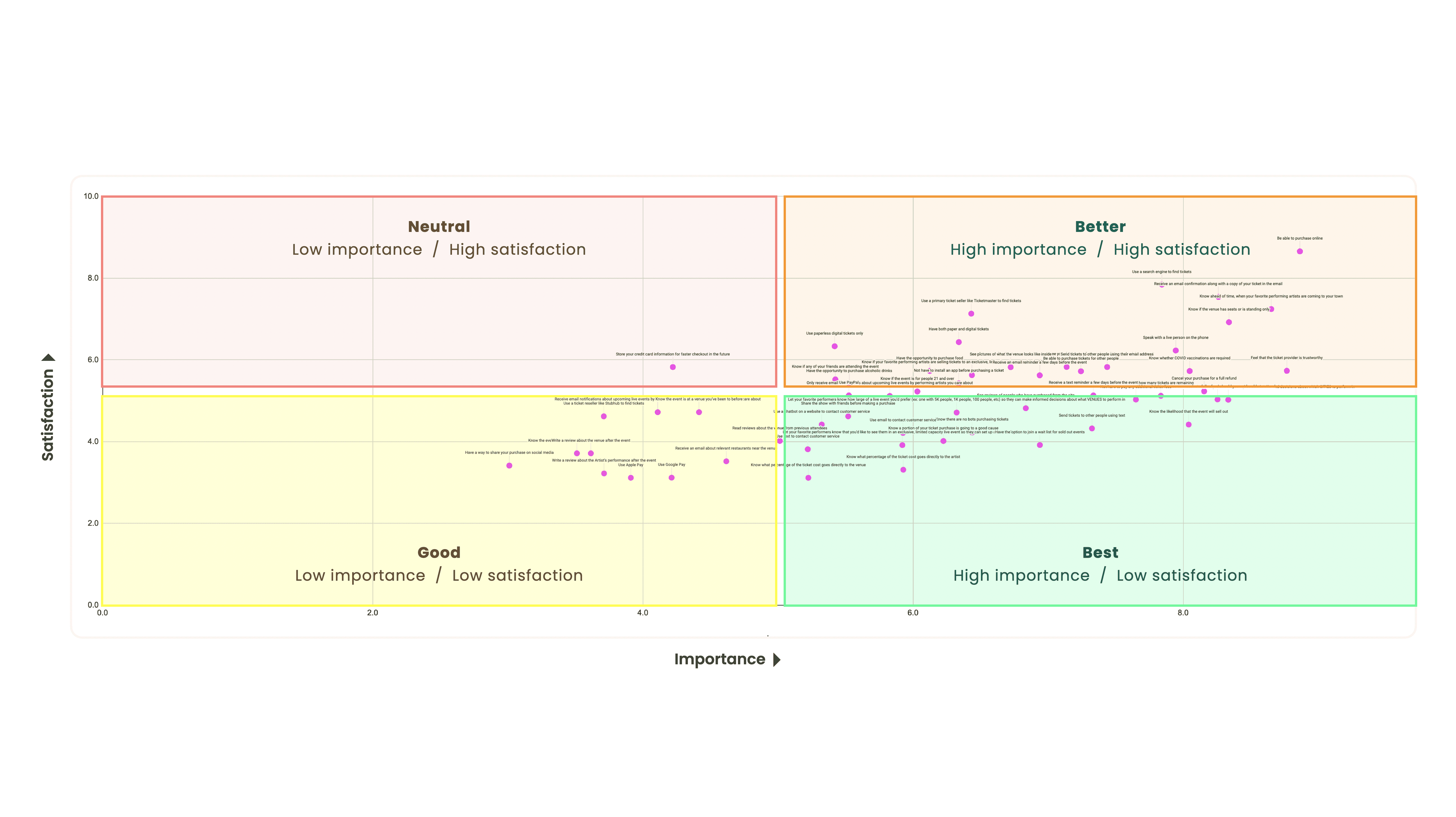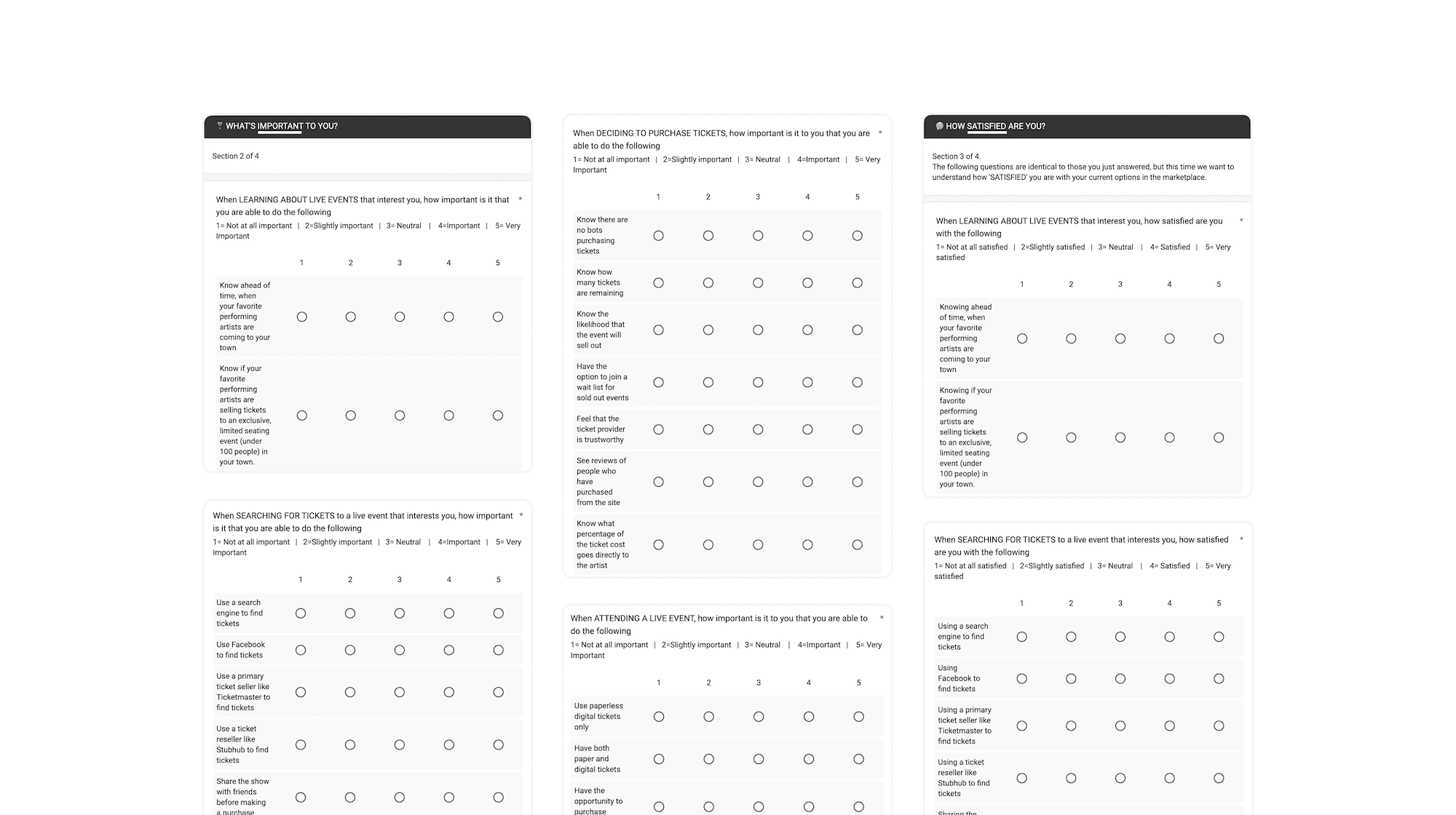 I also interviewed musicians, attendees, and hosts directly, surveyed more than 1,000 people to find where importance was high and satisfaction was low, and studied the existing competitive landscape.