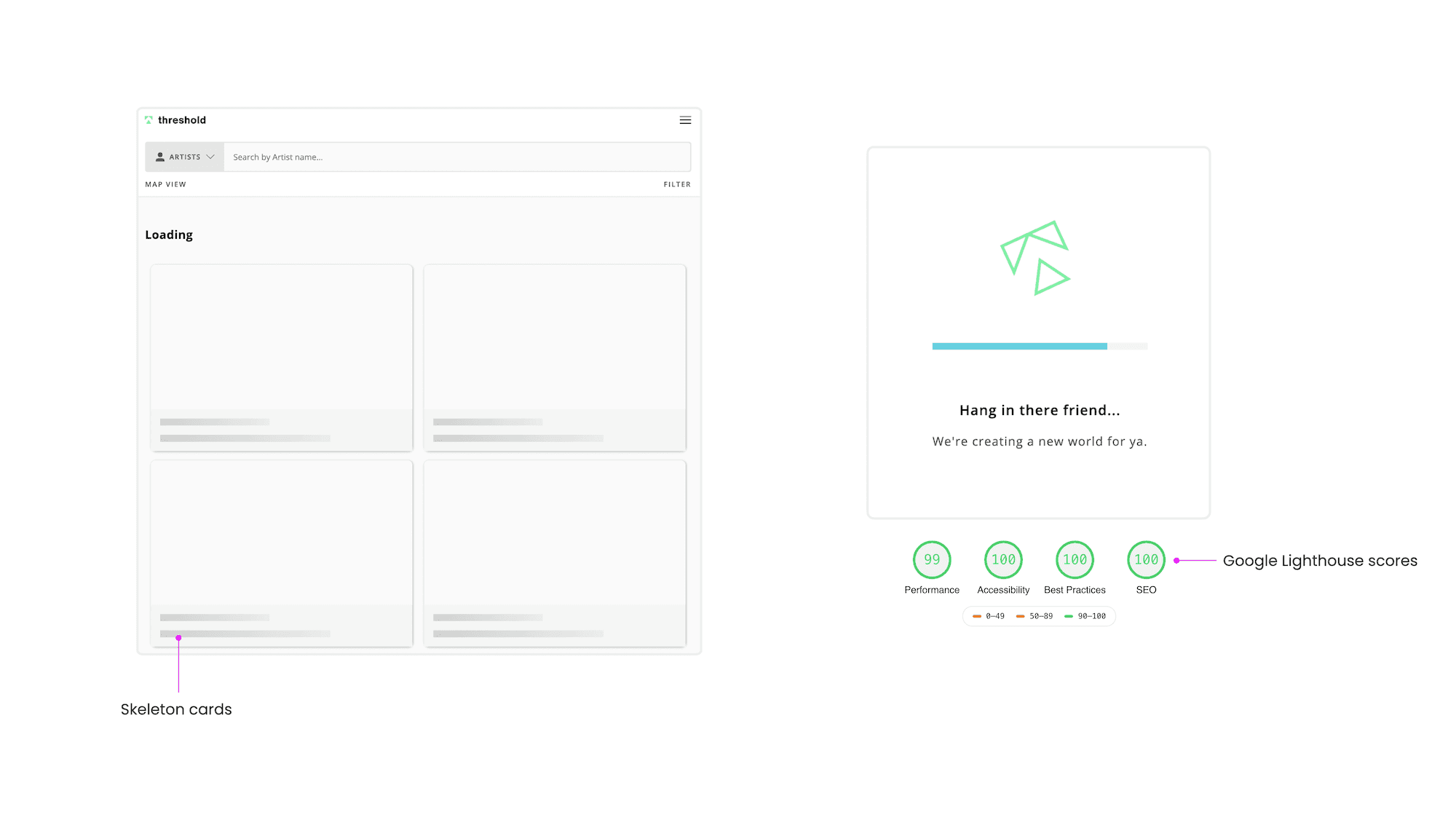 The end result was a fully responsive progressive web app built with React, Redux, GraphQL, and Node.js. It was designed to feel simple, trustworthy, and fast, and engineering helped optimize performance to the point that we achieved near-perfect Google Lighthouse scores.